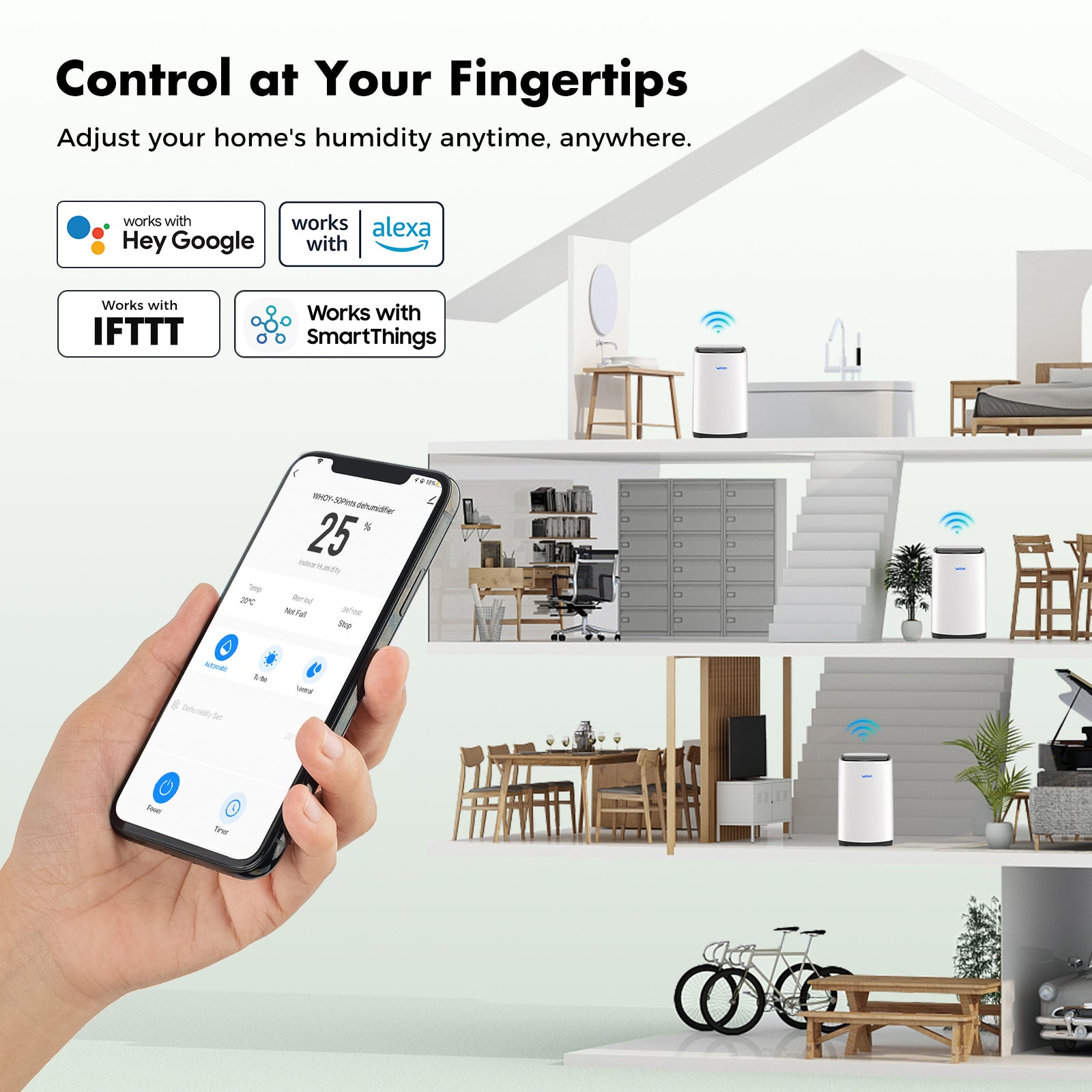 - App-Controlled Convenience: Control your dehumidifier from anywhere using the WHOY smartphone app. Adjust humidity settings, switch between modes, set timers, and monitor the water tank level, all through your phone, making home air management easier than ever.